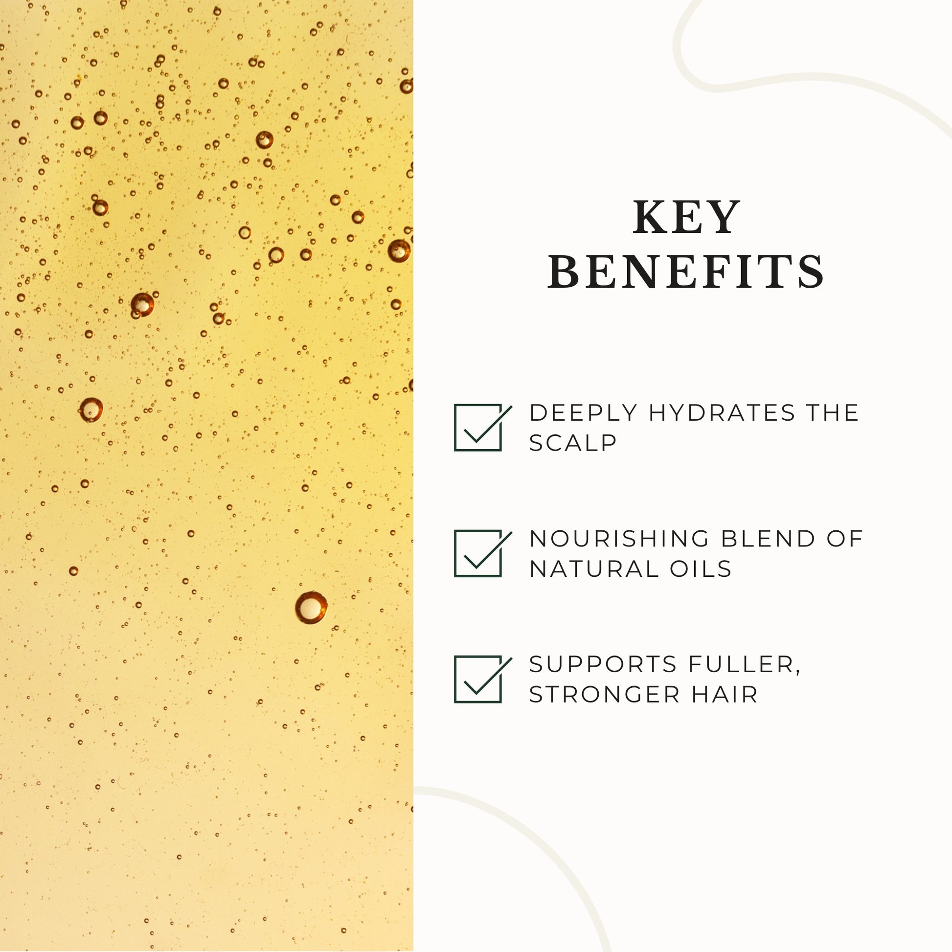 The combination of Jojoba, Argan and Almond Oils deeply hydrates the scalp and hair, preventing dryness and promoting a smoother texture.